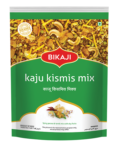 Buy Bikaji Kaju Kismis Mix 350g online at best price. A delicious blend of spicy lentils, dry fruits, cashews and raisins – perfect tea-time snack and festive namkeen.