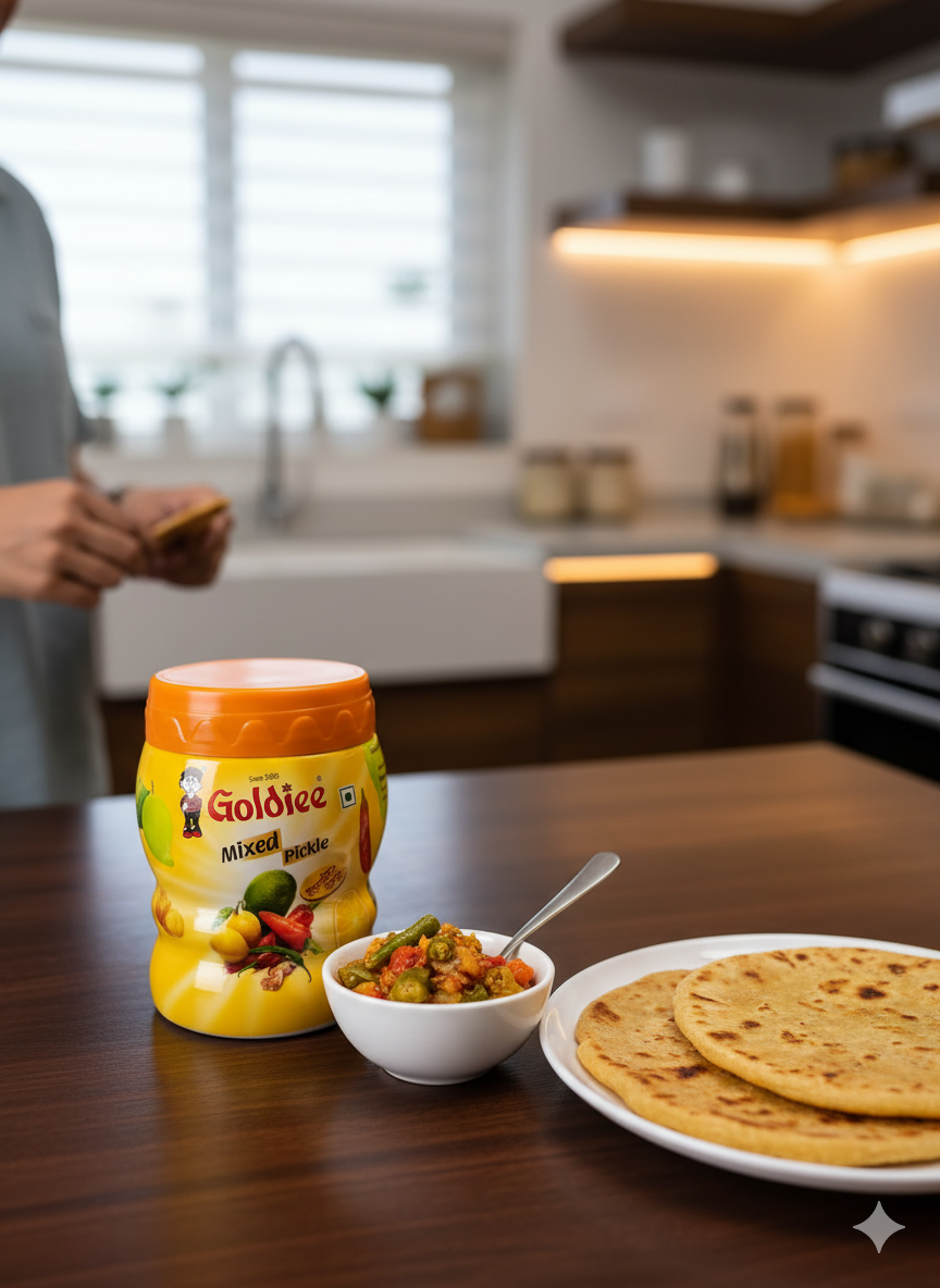 Add bold flavor to your meals with Goldiee Mixed Pickle.