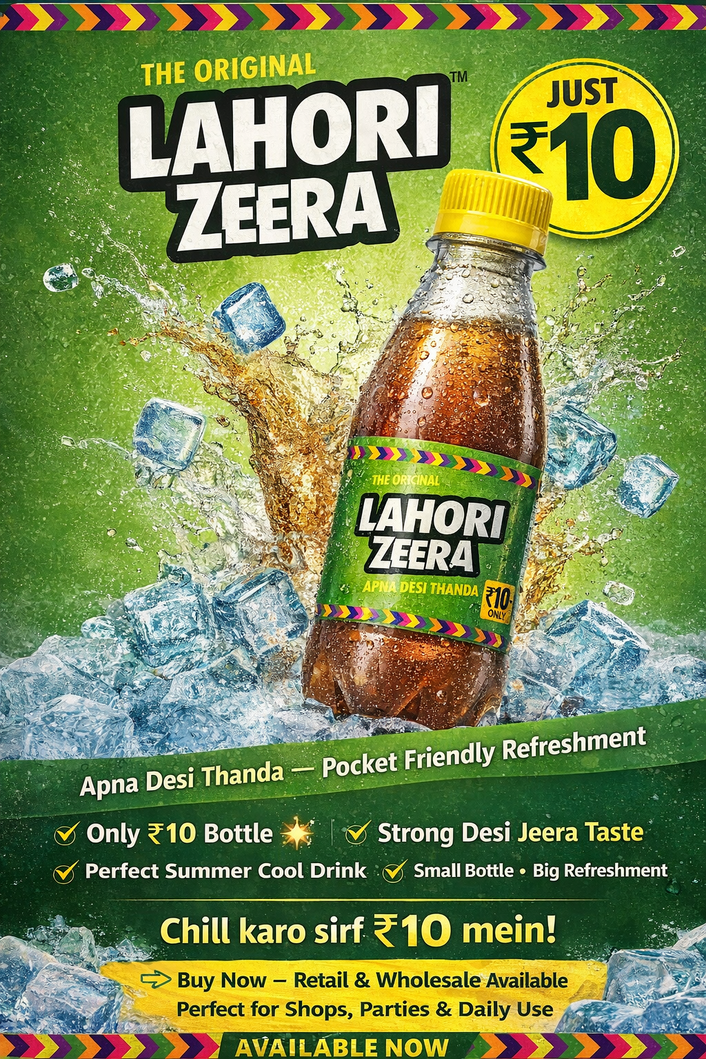 Whether you are looking for an affordable cold drink for your store or a refreshing beverage for personal use, Lahori Zeera ₹10 bottle is the perfect choice.