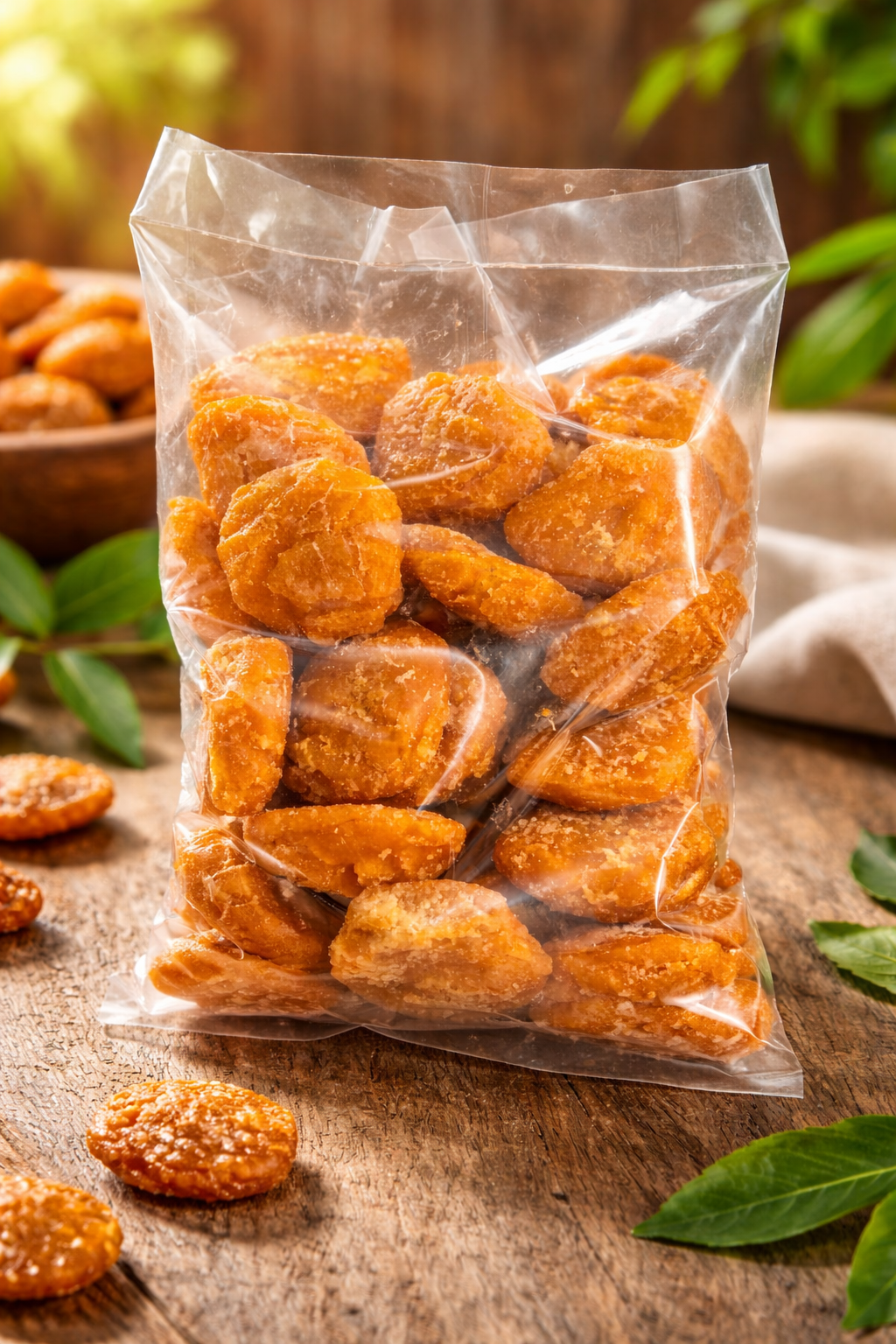 This premium-quality jaggery (gur) candy is made from pure and natural sugarcane, offering a delicious and healthy alternative to refined sugar sweets. Packed in a hygienic transparent pouch, these bite-sized gur pieces are rich in essential minerals and provide instant energy.