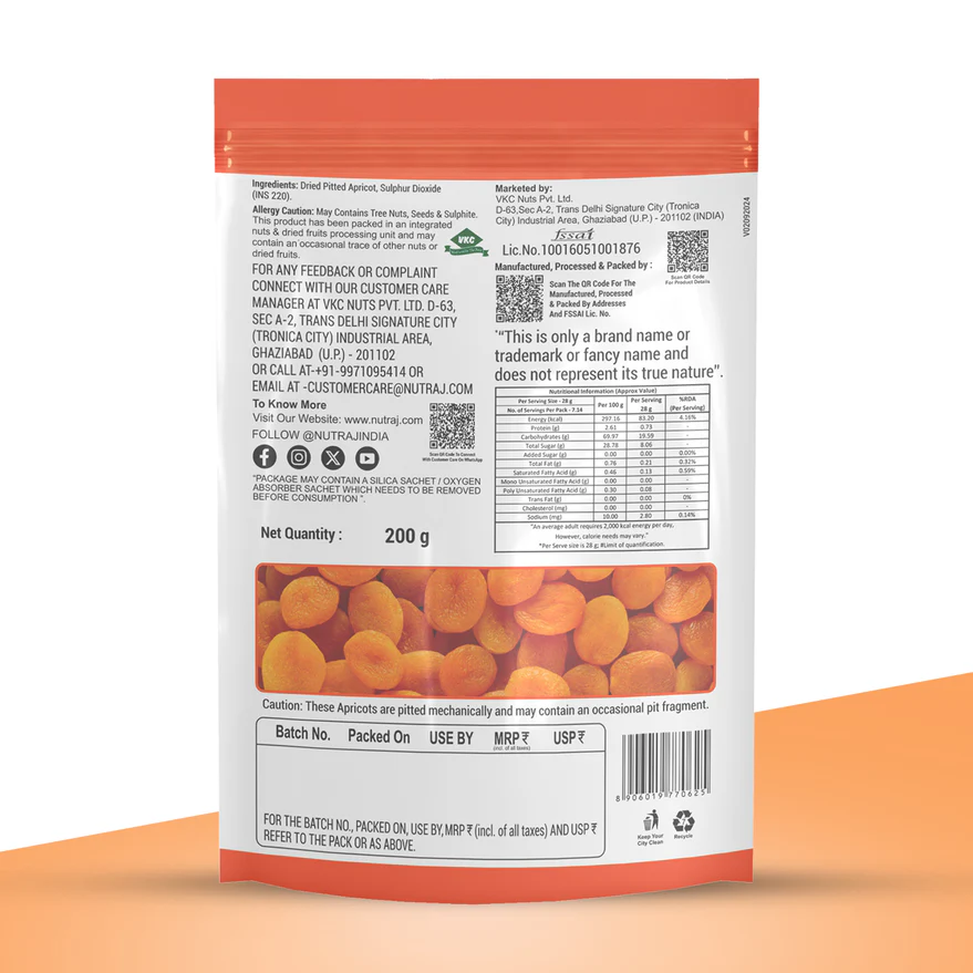 Buy Nutraj Seedless Apricots (200g) online. Naturally sweet, pitted dried apricots rich in fiber and nutrients. No cholesterol and no trans fat.