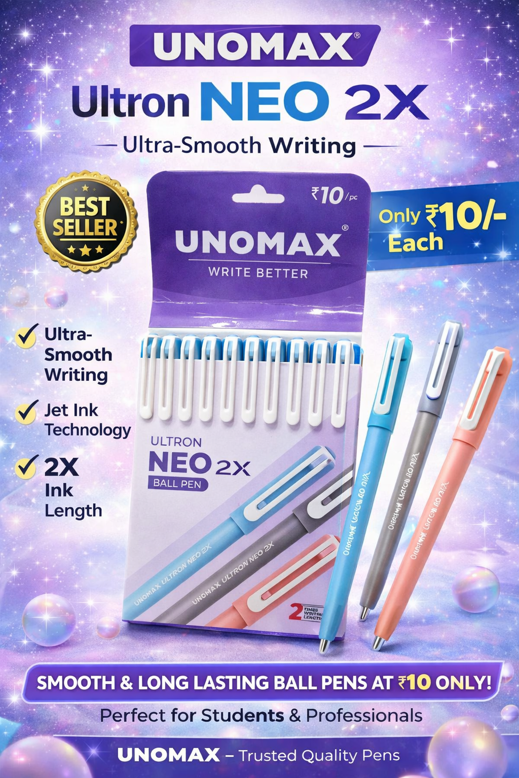 Available at just ₹10 per pen, UNOMAX Ultron Neo 2X combines quality, durability, and affordability in one package.